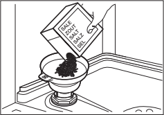 - Ta bort eventuellt salt från saltbehållarens öppning