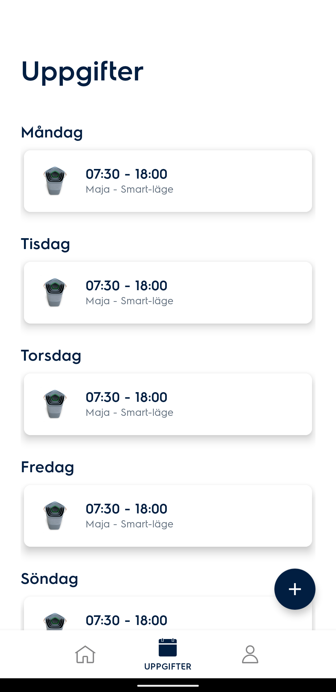 - Du har nu sparat schemaläggning och kan se vilka dagar, tid och läge din luftrenare kommer köra. För att ändra schema tryck på specifik dag och ta bort. Tryck på plustecknet för att schemalägga ny rutin