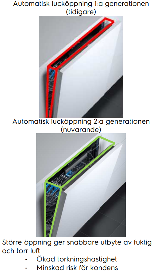- Observera att det kan vara skillnad mellan olika årsmodeller beroende på vilken generation av AirDry som diskmaskinen använder sig av