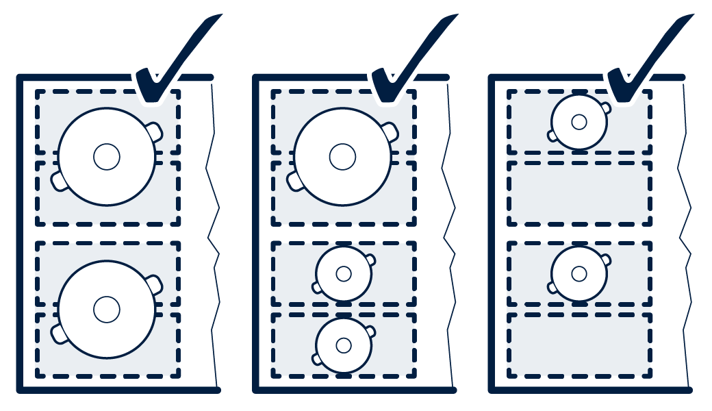 Placera kokkärl av lämplig storlek i mitten av kokzonerna för optimal värmefördelning.