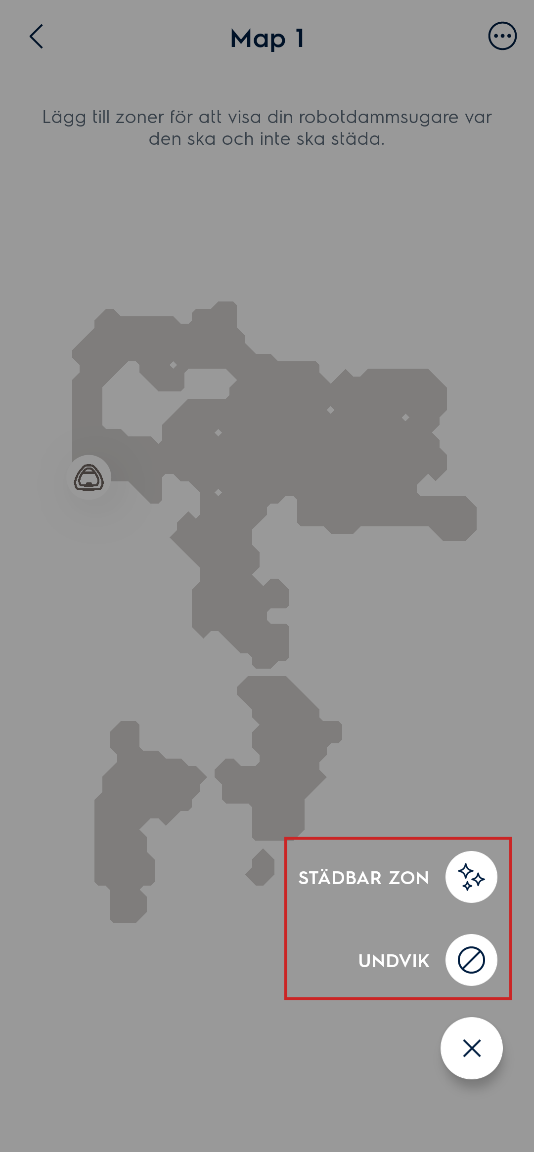 - Välj om du vill lägga till en Städbar Zon eller en zon roboten ska undvika