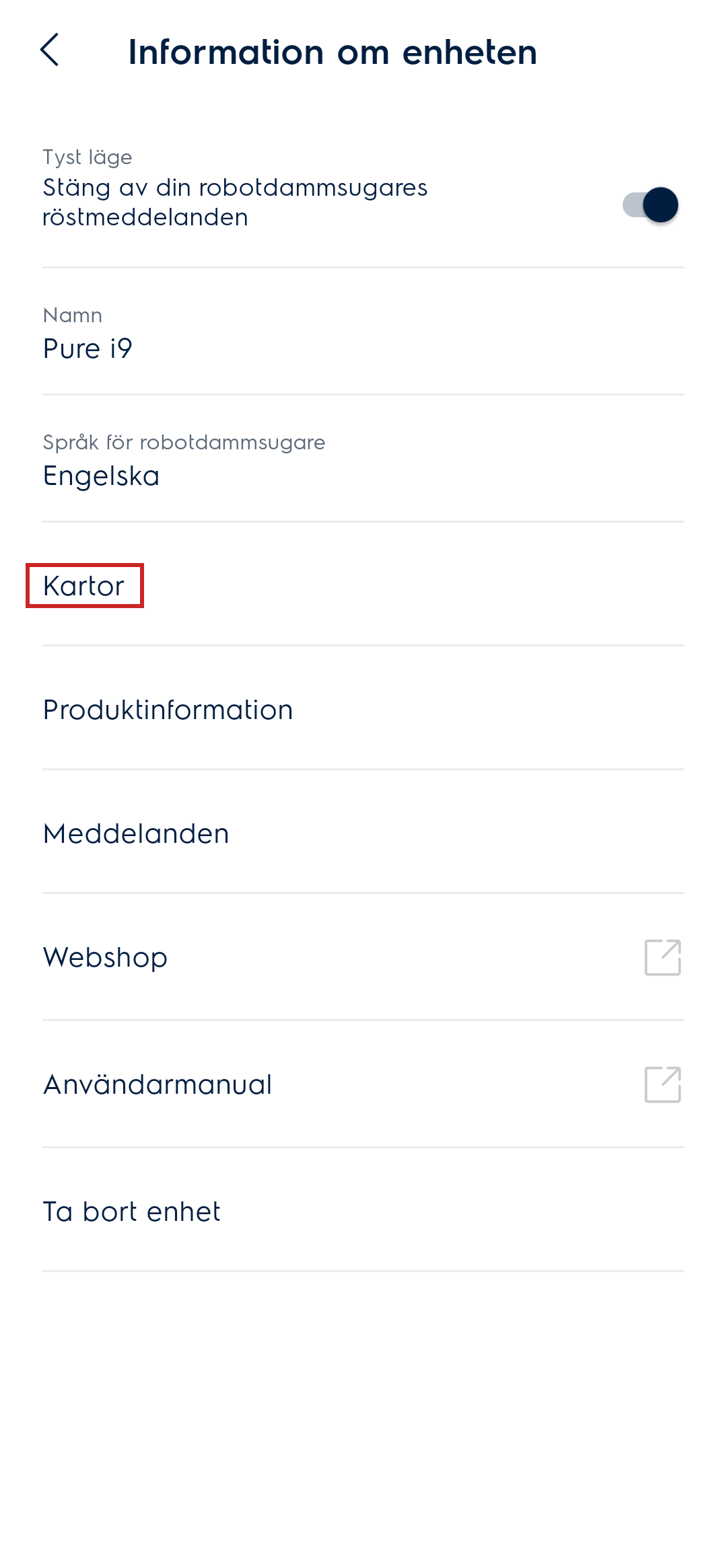 - Via menyn: Tryck på Kartor